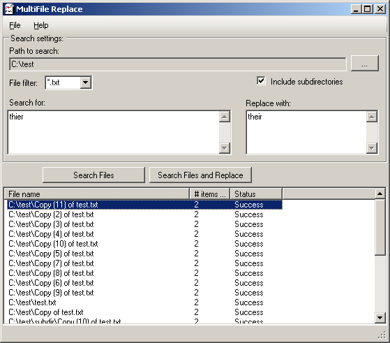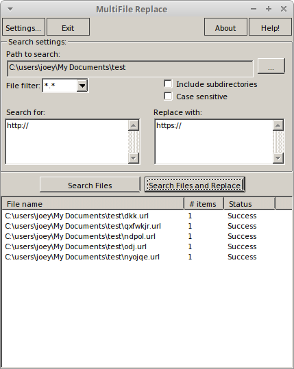 MultiFile Replace allows you to scan a directory (and sub-directories) to find and replace words or phrases. It is great for updating web sites with static pages if a link changes or to update the copyright information if you have changed the content of those pages. Case sensitive support added in version 0.1.2.