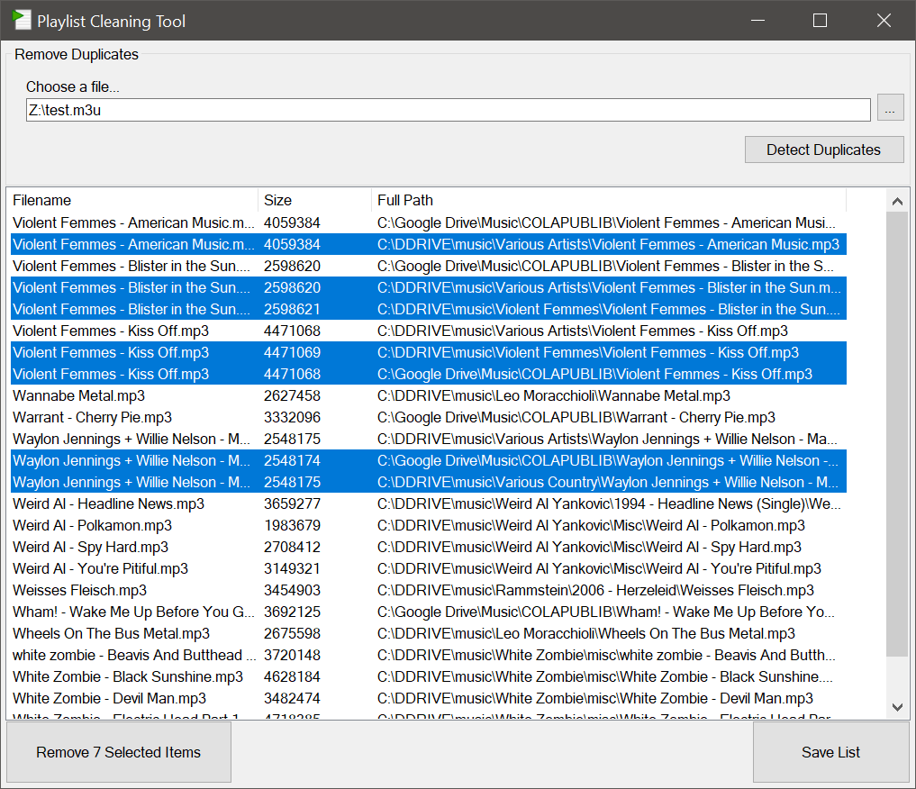 It currently supports the ability to find and remove duplicate entries in the the playlist file, even if the files are in different locations, as long as the file size is within 128 bytes (e.g. a file does or does not have an ID3 tag).