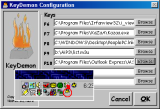 KeyDemon is a hotkey program that runs in your system tray. It allows you to map the F6 through F12 keys to any file/program you want. Then, at the press of a button, your file/program opens, ready for use. If a file is opened, the default program to view that file is opened. If a program is opened, then the program loads, ready for use.